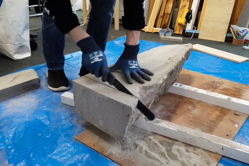 Designed by Arashi Abe, the Akuseki stone chair, using waste materials obtained from local sources in Sapporo, Japan, is the only chair in the world produced with these materials. Sapporo soft stone is a material that is only found in the Ishiyama region of Japan and is abandoned in large quantities in quarries because it has no commercial value. Among these stones, the very soft and amorphous ones are called Akuseki stone, which means “bad stone” in Japanese. Akuseki stone is used as the main material in the chair designed by the artist to show the charm and beautiful texture of the stone to many people, thanks to the iron, wire and clamps, “lightness” and “softness” are brought to the chair. Because Akuseki is such a soft stone, the artist used brick saws, electric drills and sandpaper to cut and drill the stone, as well as craft a special tool to properly machine the stone.