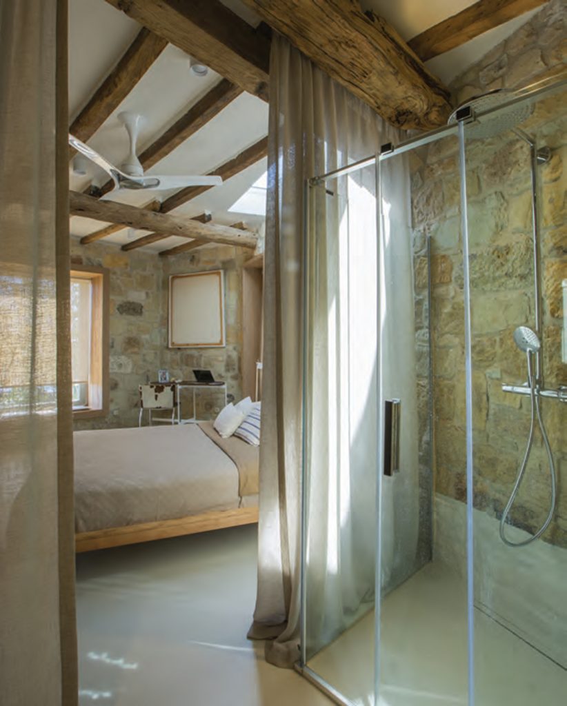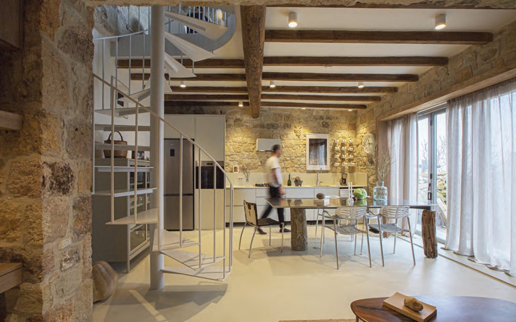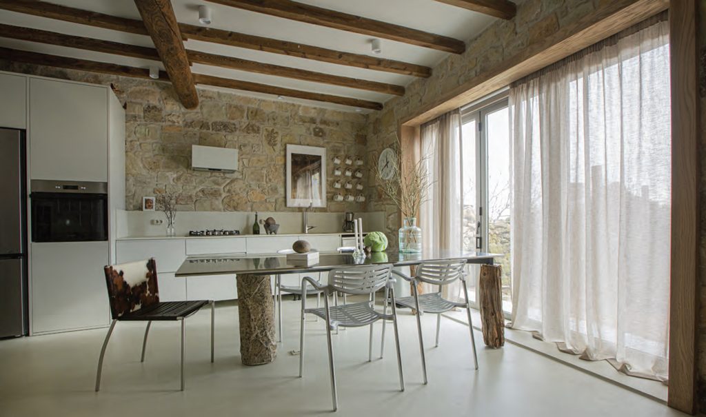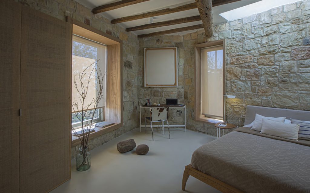 Rectangle Studio founded by photographer Derya Atıcı and interior designer Tarık Korkmaz, is a collective design office based in Istanbul and Assos-Ahmetçe that works on interior design furniture design, advertising photography, and video. In the Damda Stone House project, they took the stone at the center of the design and shaped all the other elements around it in order to harmonize the modern design concept with a stone house in the village of Ahmetçe in Kazdağları. Saying that nature shapes the process by presenting a recipe for design, the designers preferred to use the materials at home while preserving their naturally deformed appearance. The wall stones used in the foundation construction of the house, the wood used in the ceiling and floor, and the immovable furniture were re-functionalized for use in the space. The wood of the section used as a barn at the entrance of the old building was recycled by using in the construction of the pergola on the terrace and in the ceiling construction. The micro cement used as a flooring material provides a one-piece surface appearance while highlighting the natural stones used on the walls and specially designed furniture. The main purpose of the designers has been to reinterpret the wooden and stone elements that have changed their form over the years, with new and modern areas of use. Since the building has no garden and opens directly to the road, the designers met the need for communication with the outside with large openings and terraces. While the stonework was solved with the cooperation of local craftsmen and related companies, most of it was undertaken by the studio’s teams in Istanbul.