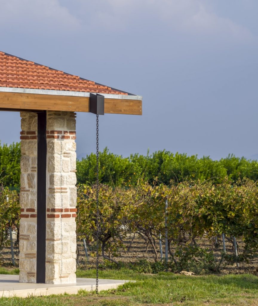 The layout of the house was determined by adjusting the margins for front and back yards to be formed, in addition to the existing vineyard within the land borders previously identified for the building within the orchard. The spatial organisation started to take its form following the adoption of decisions for the materials and the bearing system to be used.