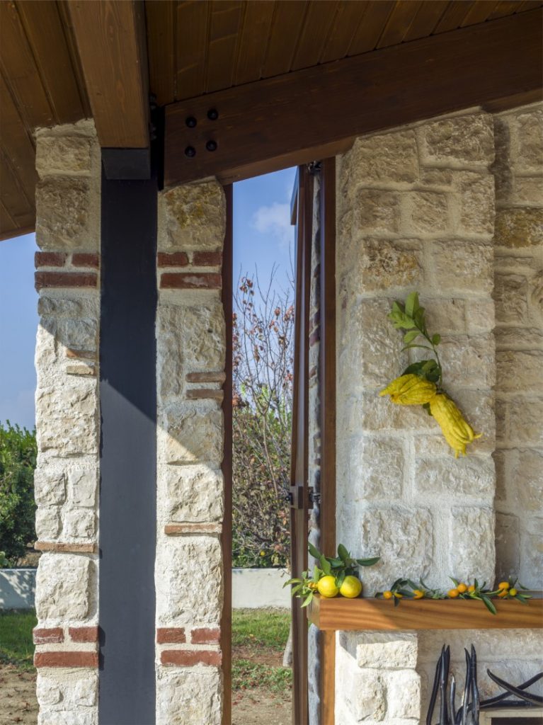 In this structure consisting of single-story, steel-frame-reinforced masonry walls and a timber roof, a sustainable design and engineering model was adopted. The house was built with local stones of the region, bricks salvaged from old structures, steel, and wood. The main bearing system of the building is composed of laminated wooden roof beams and panels on steel columns and beams.