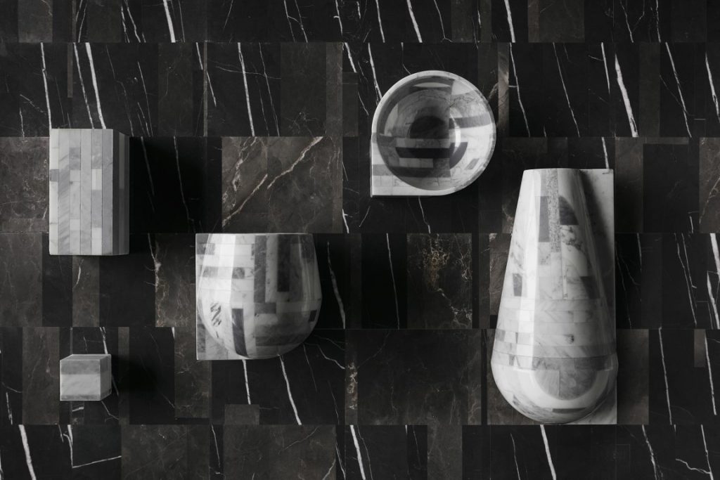 “Little Gerla”, a collection of four vases, designed by world-renowned Italian designers Paolo Ulian and Moreno Ratti all made from marble waste and without producing any waste. The tile was cut by water jet and divided into four equal pieces of 20 x 20 x 3 cm and from each of these thin concentric rings are superimposed and rotated among themselves. Stating that waste materials are the basis of their research, Ulian and Ratti’s vases are unexpectedly lightweight for something made from marble and their surfaces bear the characteristic markings of the water jet.