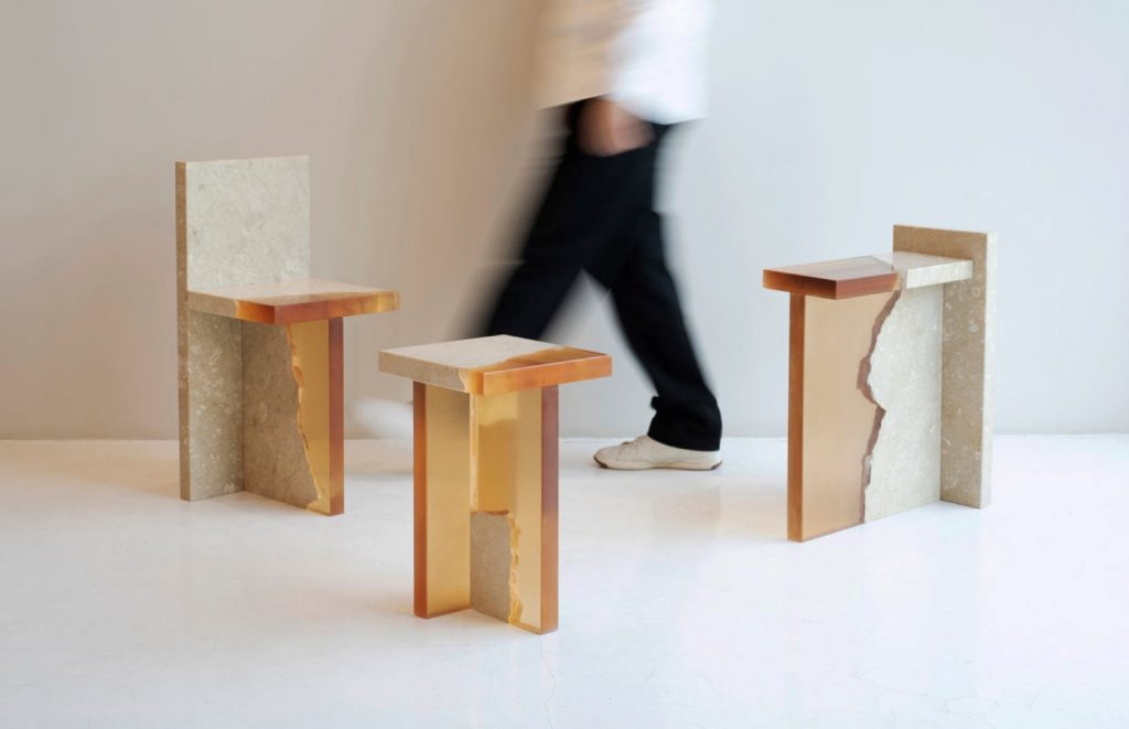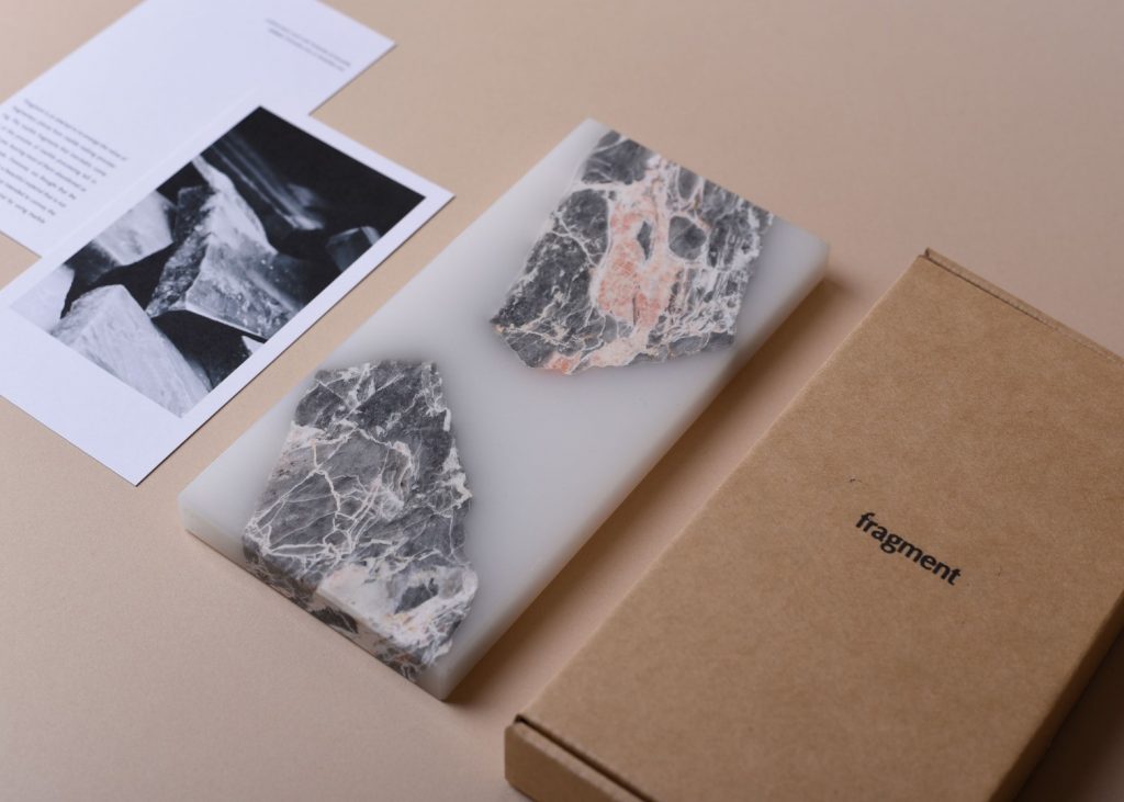 Değerli bir hikayeden beslenen “Fragment Series”in tasarım süreci, malzemenin yurtdışından ithal edildiği, mermer kaynağı bulunmayan Güney Kore’nin mermer parçalarının kullanılmadan atılmasına dayanıyor. FICT tasarım stüdyosundan tasarımcı Hea-Kyoung ve Jung-Ki tarafından endüstriyel atık sorununu çözmek için ortaya koyulan proje, mermerin değerini yüceltme ve sürdürülebilirlik konseptinden besleniyor. Bir mermer şirketiyle anlaşarak, mermerleri reçine malzeme ile birleştiren tasarımcılar, mermerin doğal halinin eşsiz güzelliğini göstermeyi amaçlıyor. Bu amaçla mermerin doğal güzelliğini ham olarak ortaya koyan ve onu kristal reçine malzemeyle birleştirerek işlevsel kılan bir koleksiyon ortaya çıkmış. Tabure, sandalye, sehpa, tepsi gibi çeşitli gündelik mobilyalardan oluşan koleksiyon, endüstriyel sorunları tasarımla çözmenin bir örneğini gözler önüne seriyor.