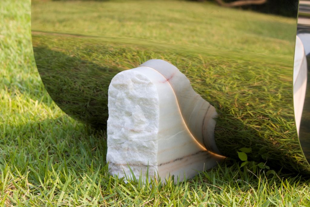 Jinsik Kim’in “HalfHalf” ismini verdiği koleksiyonu, doğal taş ve paslanmaz çeliğin potansiyellerine yönelik deneysel bir çalışma. Koleksiyon, insanoğlunun üretme tarihini paylaşan doğal taş ve çeliğin potansiyellerini denemenin yanı sıra malzemelerin saflığı arasında kontrast oluşturarak zamansız bir tasarım yaklaşımını benimsiyor. Farklı türde mermer bloklarının işlevsel birer heykel gibi masa, tabure veya yan sehpa olarak kullanılabildiği tasarımlar, kare, dairesel, yüksek veya alçak modellerle çeşitlendirilmiş. Hafif bir malzeme olan çeliğe görece ağır mermerlerin eklenmesiyle işlevsel yön kazanan eserlerin formu doğal taşın dokusunun bükülmüş çeliğin yüzeyi tarafından ayna gibi yansıtılmasını da sağlıyor. Basit geometrik formlarla ortaya koyduğu koleksiyon için tasarımcı Kim, kullanıcıların merak ve hayal gücünü harekete geçiren işlevsel heykeller yaratmayı amaçladığını belirtiyor.