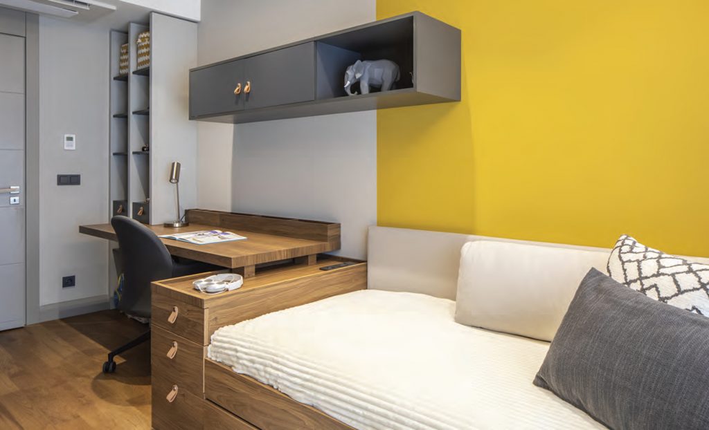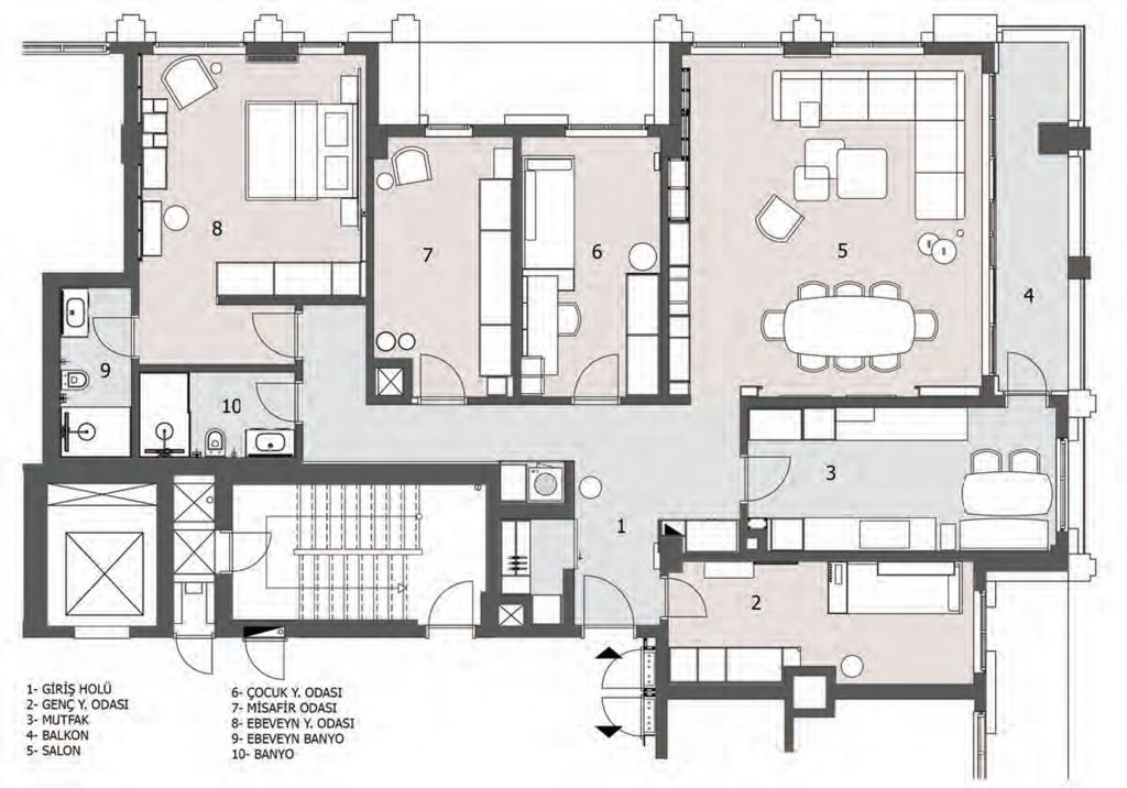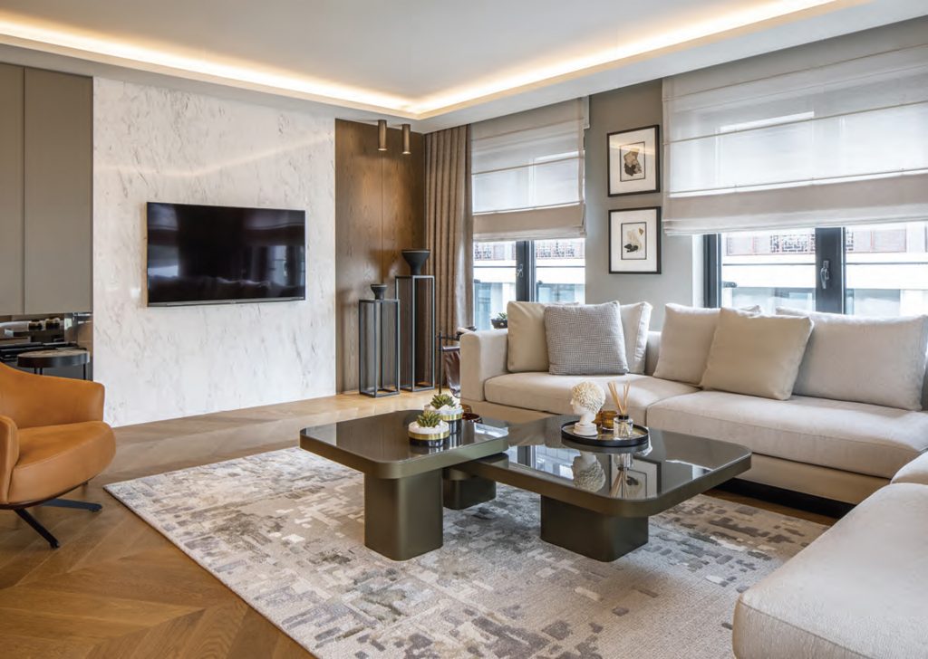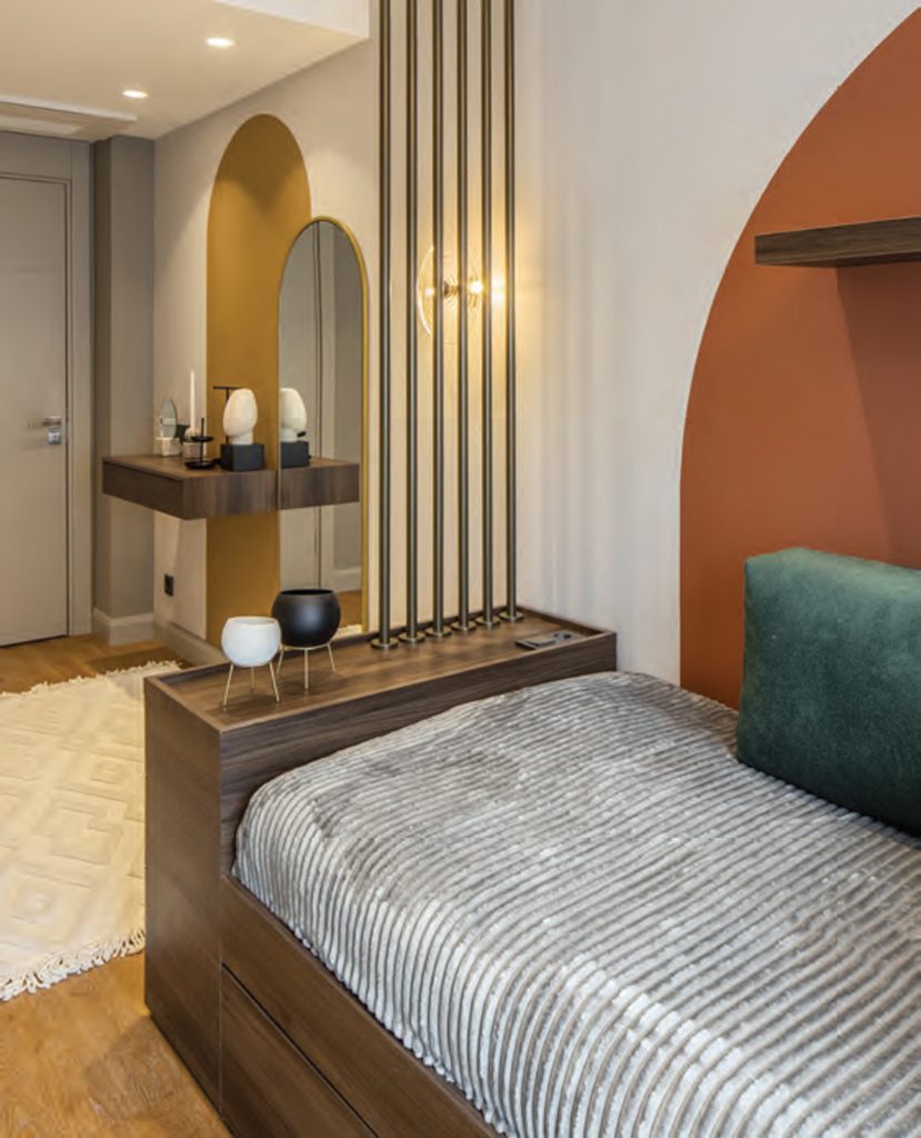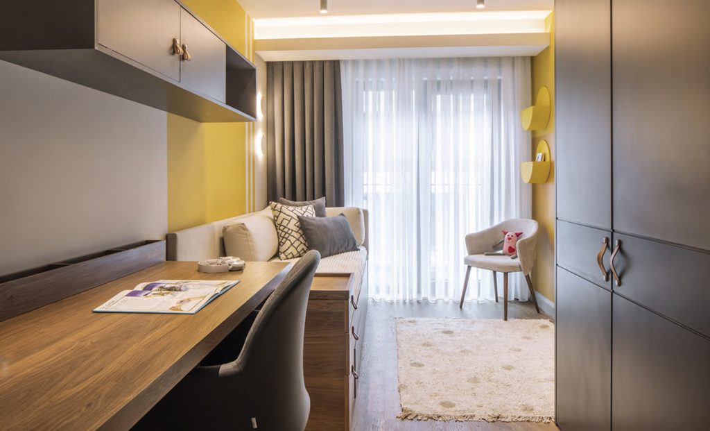 The GAK House designed by Yalın Tasarım Mimarlık in İstanbul, Koşuyolu started in 2020 during the pandemic period. An increase was demanded in the number of beds in order to meet crowded family gatherings and a playroom for children. In addition, since it is desired to increase the storage areas and use the bedrooms in the most efficient way for the children of the house, the functions are planned accordingly and the spaces are personalized according to their users. The main purpose of the design team throughout the process has been to construct a balance between function and aesthetics. While providing all these, it was aimed to create a timeless style where geometric forms can be read in a modern and simple line, warm and cold tones are used in balance, and natural materials come to the fore. In material selections, a design language in which natural material is at the center is the priority, while wooden surfaces and marble are chosen and harmonious colors and textures were preferred. Although the design language is planned in a plain and simple line, the detailed analysis is far from simple and is solved in a processed way. Even though the furniture details on the TV unit in the living room were not noticed at first glance, there were solutions that were decided upon by having many samples made in the workshop. For the selection of natural stone materials, which have a calm and spacious marble was chosen. With this choice, a spacious and calm effect is achieved, while the warm effect of wooden surfaces is balanced with a colder material. Although the flexible structure of the selected marble limits the use of large sizes, the TV unit can be applied in a way that consists of two pieces of marble slabs. The design team, which has to use the space efficiently, worked with the awareness of evaluating every corner and solved some special details. While one of these areas is the cloakroom area, special furniture solutions, and baby beds are added under the beds in order to increase the bed capacity in the children’s rooms. In order to use the playroom planned for children as a guest room at the same time, a hidden bed that can be opened and closed in the room has been solved. While the design team expresses that the language of this project and the line of the office exactly match, they say that the project has a different meaning in this context.