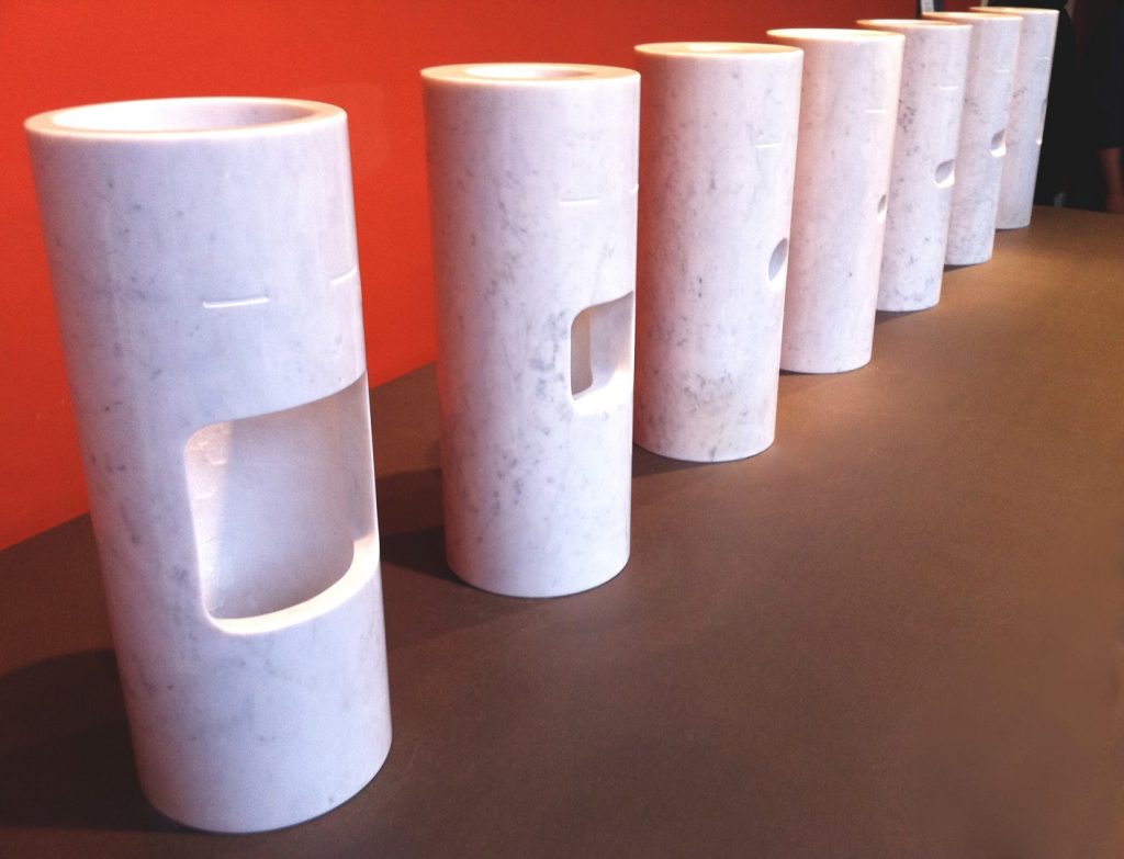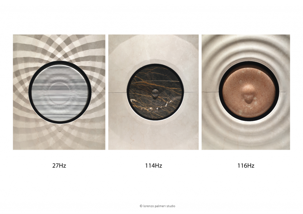 Doğal taşın en az bilinen ve uygulanan yönlerinden biri olan sesi vurgulamayı amaçlayan dinamik heykel serisi “Gerico”, üç mermer duvardan oluşuyor. Çizgiler, oluklar ve tümseklerin hassas ses frekansları tarafından oluşturulan bir modelde birbirini takip ettiği bir enstalasyon olan “Gerico” da farklı renkler, malzemeler ve dokular işitme ve dokunma duyularını geliştirerek görme önceliğini aşmayı amaçlayan fiziksel bir senfonide bir araya geliyor. Malzemenin güçlü ifadesinin ön planda olduğu ve merkezine ziyaretçileri yerleştiren tasarım, ancak ziyaretçilerle etkileşime geçtiğinde hayat buluyor. Goethe’nin dediği gibi “Mimari donmuş müziktir” ifadesinin aksine tasarımda taş, insan dokunuşu ile seslendiriliyor. Palmeri, tasarımda somutlaşan müzik araştırmalarına uygun olarak özgün yaklaşımı sayesinde malzemeyi görünenin sınırlarının ötesine taşımış.