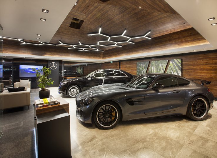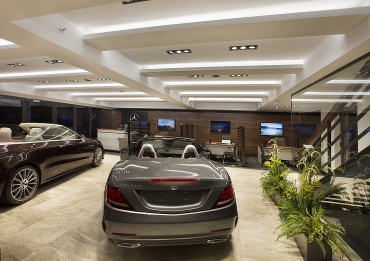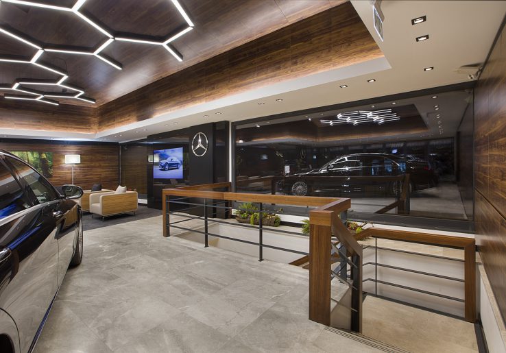Boytorun Architects, İstanbul’un önemli lokasyonlarından Etiler’de tasarladığı Mercedes-Benz Mengerler’e ait City Showroom’da kullanıcıların marka kimliğini hissedebilecekleri lüks ve elegant bir tasarıma imza atmış. Yaklaşık 330 m² kapalı ve 1.000 m2 açık alanda sergileme ve satış birimlerinden oluşan proje, alanın çevresel ve fiziksel koşullarına ve hedeflenen müşteri kitlesine uygun çözümlerle tasarlanmış. Projeye özel tasarlanan materyallerle kullanıcısının özel hissetmesi hedeflenirken aynı zamanda engelsiz tasarım ilkeleri göz önünde bulundurulmuş ve hayata geçirilmiş. Projede çevresel verilerin avantaj olarak değerlendirildiğini belirten Boytorun Architects kurucuları, eğimli arazide tasarladıkları projede, bodrum katının da showroomun devamı niteliğinde değerlendirildiğini belirtiyor. Projede, bodrum katın tavanında açılan yırtıklarda uygulanan spider cam sistemi ile hem verimli gün ışığı kullanımı hem de araçların zemin kotundan algılanması sağlanmış. Fibrobeton ve ahşap birleşimi ile kurgulanan cephe çerçevesinin showroom’daki zengin ve soft atmosferi dışarı yansıttığını belirten Boytorun Architects, çerçeveyi destekleyen yoğun cam ve ışık bantlarıyla dikkat çekici bir cephe oluşturarak marka kimliğine vurgu yapmış. Executive müşterilere hitap eden bekleme alanları, özel görüşme odası, aksesuar stantları ve sergileme birimlerinde lüks ve özel materyaller kullanan Boytorun Architects iç mekan bitişlerinde yoğunlukla siyah ve ahşap dokusunu tercih etmiş. Mimarlar markaya özel tasarlanan aydınlatma elemanlarıyla showroom’da efektif bir ışık kurgusu oluşturmuş. Projenin tasarım ve uygulama aşamasında hız, verimlilik ve standardizasyon sağlamak adına, proje Boytorun Architects tarafından dijital ortamda 3 boyutlu olarak çalışılmış, farklı ölçüde mekanlar için çoklu mağaza deneyimlerinde kullanılmak üzere parametrik olarak veriler proje üzerinde hızlıca güncellenebilecek model üzerinde tanımlanmış. Üretim sırasında güncel teknolojiden yararlanmanın yanı sıra, geri dönüştürülmüş malzeme kullanımı sayesinde ekonomik ve çevresel bir yaklaşım sergilenirken, firmanın kurumsal standartlarına uygun bir görünüş ortaya çıkarılmış.