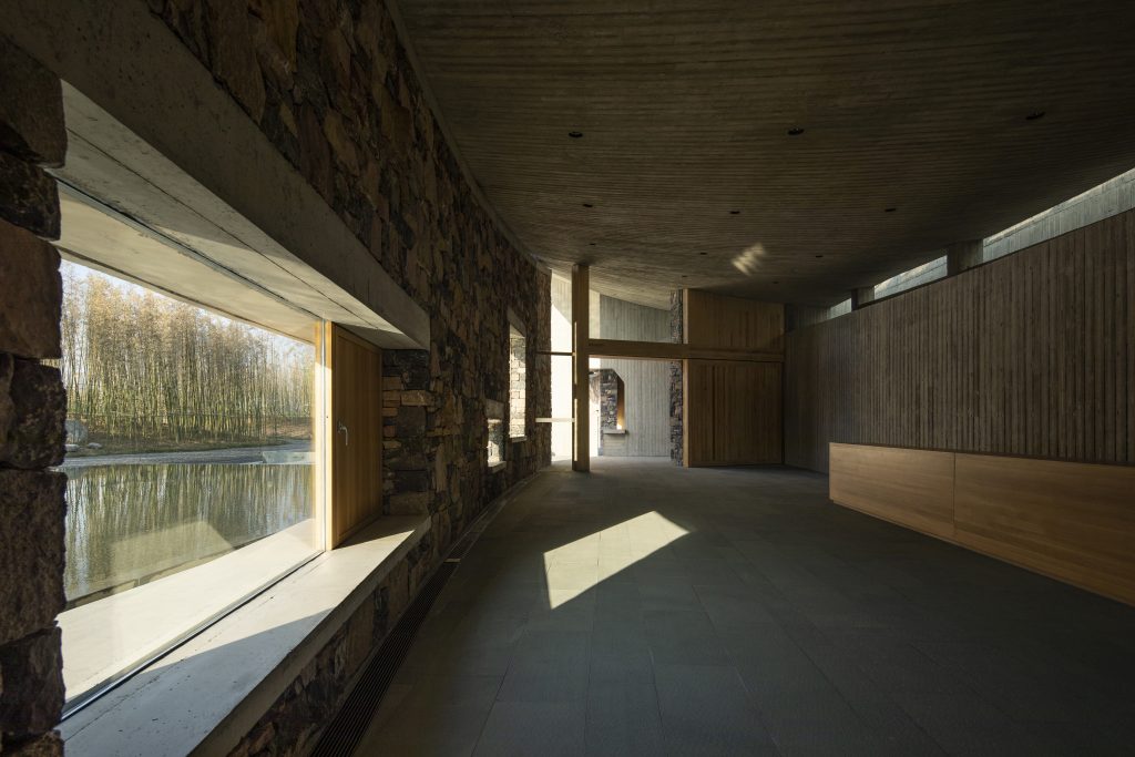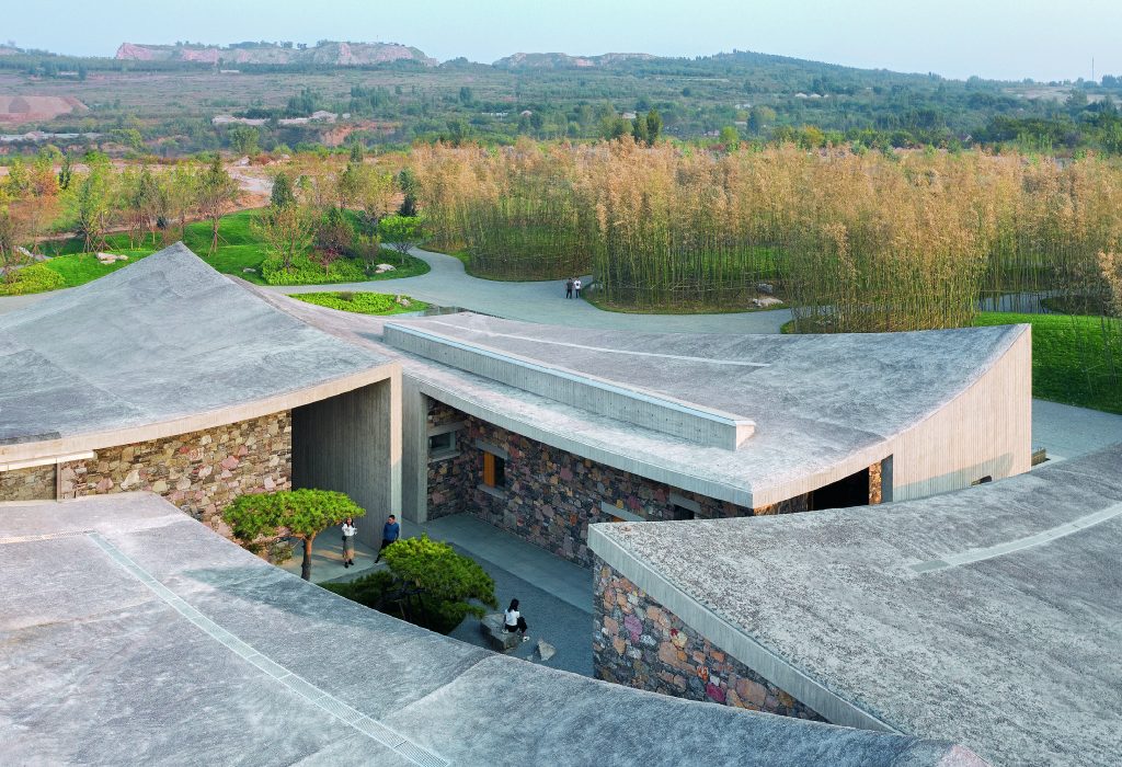 The region, hosting remnants of ancient Shang and Zhou dynasties, is surrounded by wild terrain adjacent to Fenghuangnan. The solitude and abandonment of this area inspired architect Zhu Pei to create a unique structure that blends traditional and contemporary design elements.