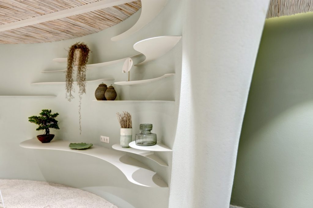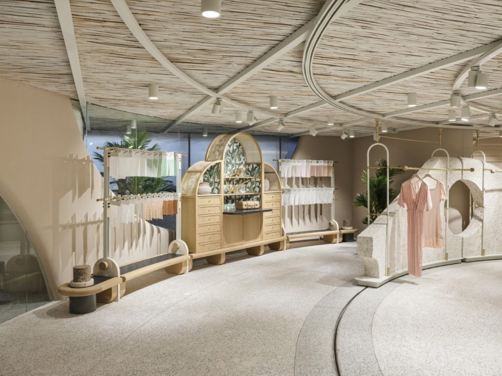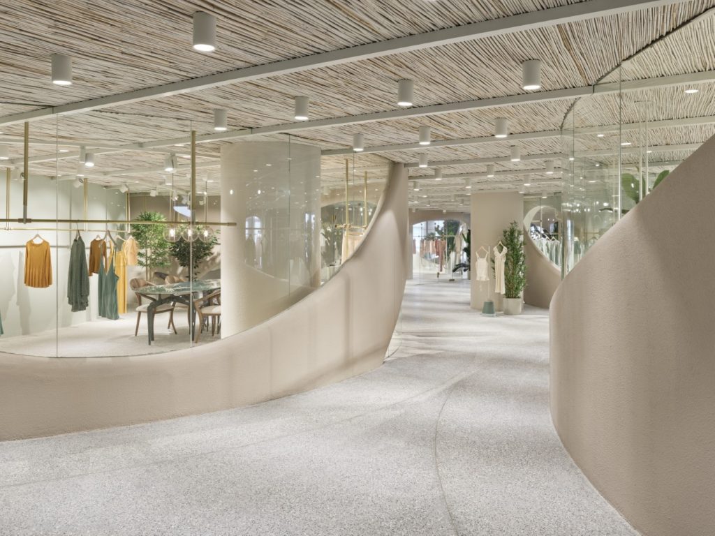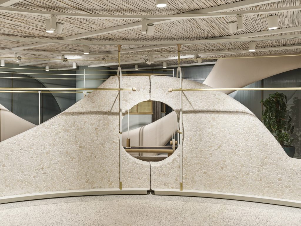 Ulupınar Tekstil HQ-Showroom was projected by Zemberek Design for a well-established textile company. In addition to the fluid circulation created by organic-shaped building elements and the feeling of “calmness” that accompanies it, flexibility for function has been provided with the designed moving surfaces. The perception of variable space captured in this way has been enriched with various perspectives.