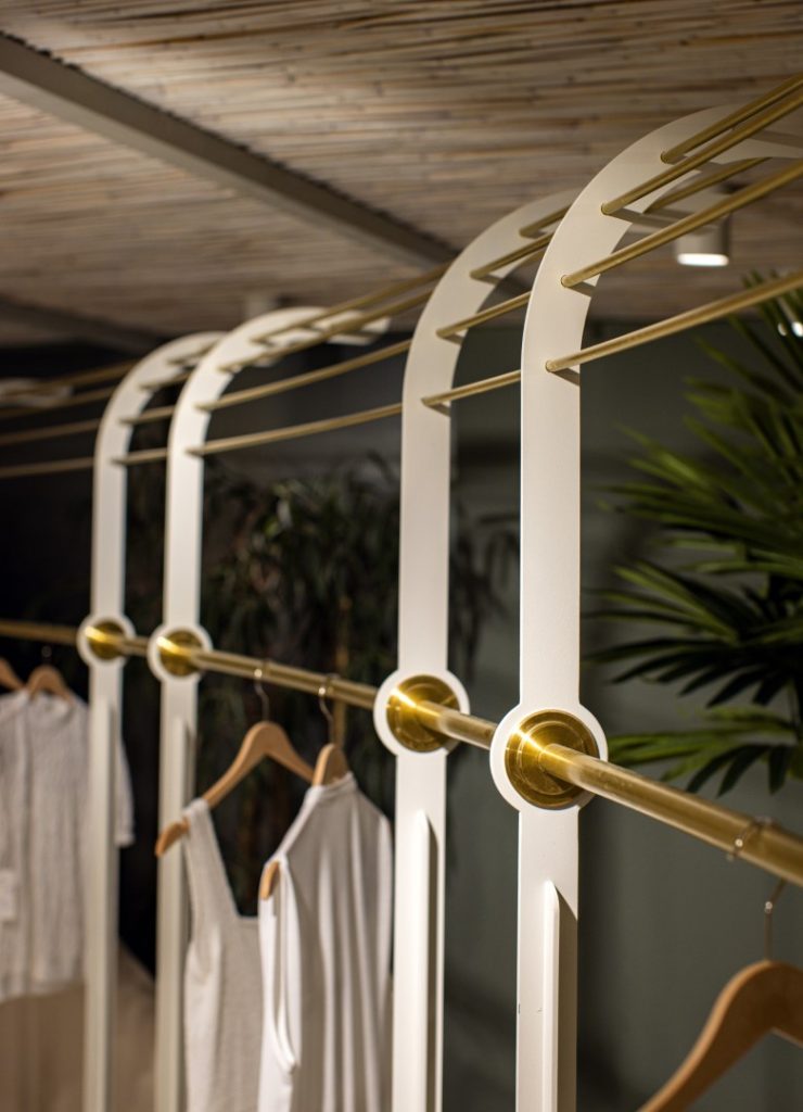 The design and material decisions are shaped to reflect the plain and elegant unity felt in the company’s products. With the curvilinear traces on all the planes that divide the space into quarters and the neutral tones chosen in the color palette, integrity is ensured with the concept of “simplicity” in the identity of the company and “lightness” in the products. Handcrafted details using brass, marble, and wood in the exhibition modules are diversified as a symbol of the richness and care of the exhibited products. The integrity aimed for the created shell is finalized with the traditional materials preferred on the floor and ceiling surfaces.