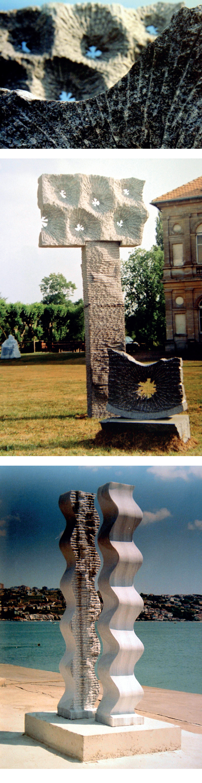 “Brancusi’a”, mermer ve metal, 1998, 133×39.5×28.5 cm “To Brancusi”, marble and metal, 1998, 133×39,5×28,5 cm 21 & 24: “Aslında Atlar Sadece Güneşi ve Yıldızları Taşırlar”, granit, 2001, 280x265x200 cm Art dans L’orne 6. Uluslararası Heykel Sempozyumu Birincilik Ödülü, Ecouche-Fransa “In Fact, Horses Only Carry the Sun and the Stars”, granite, 2001, 280x265x200 cm Art dans L’orne 6th International Sculpture Symposium First Prize, Ecouche-France