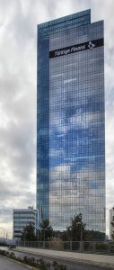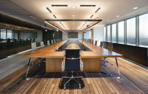 The new headquarters building of Türkiye Finans Participation Bank was constructed in Ümraniye, İstanbul, having a total of 60,559 sqm of gross construction area, 40,000-sqm of which was segregated for gross leasable area. Having National Commercial Bank (NCB), one of the largest public banks in Saudi Arabia as the major shareholder, this corporate structure’s other partners include Ülker Group and Boydak Group. For this reason, the multi-shareholder structure of the bank and it being a participation bank, were taken into consideration to be emphasized during the design process. While the 28 floors of the 33-story structure form the tower levels, the 3 floors of the remanining 5 plinth floors were planned as a parking garage and the first and second basement floors were designed as office and social activitiy areas. The main structure of the building is designed as reinforced concrete carcass, while the first and second floors the plinth level were constructed by a steel construction system. The core idea of the conceptual design was formed by the objective and motto of TFKB, “surplus value instead of consumption”, while the surplus generation of the participation notion was described by geometry. In this context, a rhombus symbolized the power created by the combination of different forces, which set out from the existing logo of the bank, disperse through four main directions, and acccumulate in a center. The resulting element thus aimed to represent the constituted “production-based surplus value”, and this three-dimensional figure was accepted and used as the corporate identity in the designed spaces. The two main entrances of the building were designated by the main entrance at the ground level providing access to the tower block, and the entrance lobby situated at the second basement floor, which is predominantly used for staff entrance and can be accessed both by walk or by staff shuffles. The corporate identity was highlighted by the austerity of spaces at both of the entrance lobbies. The natural stones used for the floorings at the entrance lobby were further applied in the same way as the wall coverings, while the ceiling was equipped with a PVC based stretch membrane having the same texture. In addition to these, the information desk designed once again with the same material structure, gives the impression as it is formed of a piece of the flooring. The wall that sets out from the behind of the information desk, moves along the central core that divides the lobby and the café space right behind it, was coated with black glazing in order to create a sense of depth throughout the space. In this way, the natural stone materials flowing through the line of floorings and walls are interrupted only at the behind of the desk, thus highlighting the information desk itself. The tower lobby level houses the central branch, which is directly connected to the exterior of the building. When going up from the ground floor of the lobby, there are open office-based floors embodying meeting floors and various bank units. On the open-office floors lie a hidden cabinet system, surrounding the core of the building, thus responding to the potential load of the archives and preventing the dense circulation to be generated in the space by the open-office cabinet dividers. In this building, which features large and fragmented spaces in such scale, this core was integrated to the cabinet system as a rhombic form appliqué, which was created with the aim of providing the integrity of corporate identity in between spaces. The dominant grey tone found at woven vinyl flooring and the expanded mesh ceiling system was warmed by the continous wooden cabinet and wall coating system surrounding the core, while the Podima coated pool at the ground level and the hidden light lines in the ceiling projection were accordingly emphasized. The small-scale masjids created on the tower floors were designed through a minimal and austere character to be presented by the concrete effect, just as in the large main masjids located on the first basement plinth level, thus establishing integrity with the main office volumes. At the facade of the building overlooking the TEM Highway along the tower floors, the floors have been receded an axis as a gallery with single-story intervals, allowing for creating social spaces in these areas. In the scope of interior design, these nestled areas gave place to two central meeting rooms, culminating in symmetrical social spaces on both sides of the meeting rooms. In order to highlight İstanbul in autumn, these areas featured single red-leafed trees, which can be perceived from the outside of the building at night owing to the light effects, aiming to turn these trees into a landmark in the area. The upper levels of the tower house administration units, while the green gardens created for the standard levels transform into bigger lobbies with an urban park identity. The boardroom was designed especially to overlook this lobby with a large green space. In this way, it was aspired to both emphasize the transparent structure of the administration and generate the feeling of being in a spacious and open green garden, as it stands for the most important meeting hall. Since the roofing of the 27th and 28th floors of the tower block, situated at the upper end, was designed as a transparent glass, the wide and spacious space created within this area was tackled seperately. This area was tackled as a social space appealing to the senior management and was further planned as an area to host important meetings and events, while prioritizing F&B functions. The 28th floor, which was planned as a mezzanine floor, includes a private seating area, the center of which features a fireplace designed by Norman Foster. Here, you are presented with the panoramic views of İstanbul’s cityscape. The entrance lobby situated at the second basement floor, which is predominantly used for the staf