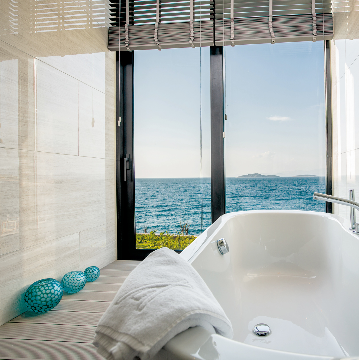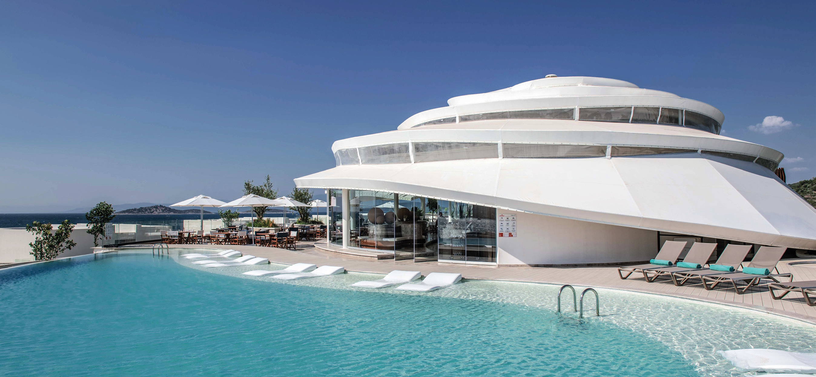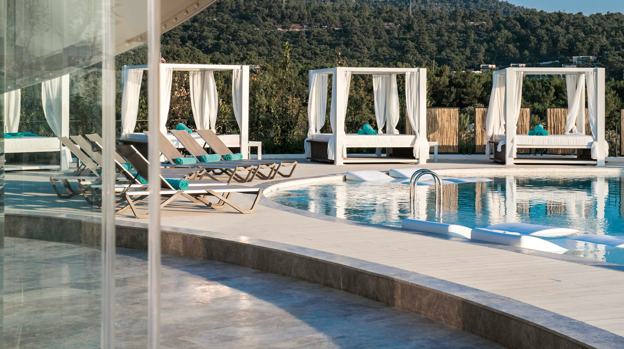 The project stands for a meeting of architecture with the sea and the green. It’s designed as a project that offers a high quality of life through being located beside the sea with a great view. The project is located on a peninsula. The public areas are located at its center and the housing units are positioned along the waterfront in a way that prevents blocking each other’s view. Bars, restaurants, meeting spaces, pools, the beach, clubs, decks for sunbathing and water sports are some of the main public areas. The housing units spread over 6,500 sqm in total as of A, B, C, D and E blocks. It has a capacity of 76 rooms and 152 beds in total. The Spa&Wellness unit is located in the F Block. While designing the housing units, two of the fundamental factors were the view and the privacy of visitors. All the rooms are positioned in order to have views. Along with terraces and their own private pools, different types of rooms were created.