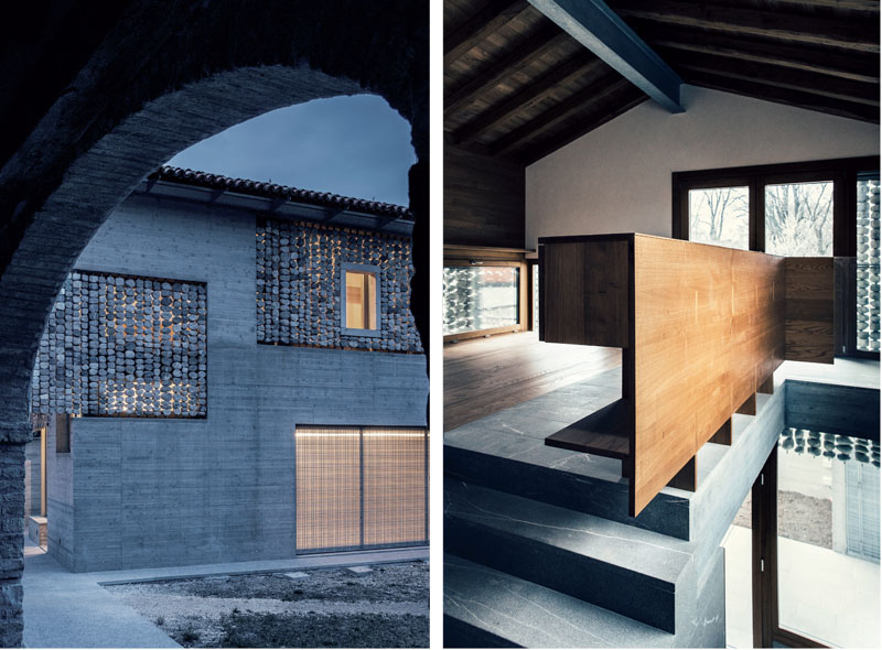 Site Area: 2,216 sqm Dwelling Area: 420 sqm (300 + 120) Architect: ELASTICOSPA + 3 Collaborators: Valeria Brero, Corrado Curti, Daniele Almondo, Marco Burigana, Andrea Rosada and Serena Nano Structural Project: Antonio Colonnello Factory Constultant: Proj-system Prime Contractor: Bedin e Arrigò Photographs: Mattia Balsamini (House 1) and Elisabetta Crovato (House 2) In the historical centre of San Quirino, various interventions from recovery to demolition and reconstruction, investigated the role of materials in the renovation of the historic urban core of small Italian towns. Considered as a highly risky seismic area, the region called for tackling the fragility of materials so as to reinterpret the use of traditional stone walls. The main building of the complex (house 1), has been restructured in order to create a single family residence, while preserving some qualities having architectural importance such as an arched portico and a main facade where the robust nature of materials was combined with the harmonious distribution of openings. The other structure (house 2) has been transformed into a coach-house that emanated from the demolition and reconstruction of barn, whose structure was in a critical condition. When considered from an extensive viewpoint, the project has been re-invented with a dose of irony employed for the building materials, playing with the building tradition and altering the role of materials and the previously-established hierarchies. The original structure of house 1 was tackled as a shell that creates a new living organism, which was obtained by sliding box-shaped volumes at different levels so as to create complex spaces. These boxes of reinforced Designed by SAOTA, this family house has a special location and a beautiful view; the implemented architecture was shaped in a way that takes in the surroundings as much as possible. The most exquisite feature of the house is the inverted pyramid roof, which creates an elevated window around the upper floor and allows the building to open up to the dominant view. This roof also strengthened the connection to nature and its cycles by opening up to views of the sky. Built in a traditional Cape way, the house presents a stone wall, while revealing very little about its interior space. At night, the inverted pyramid roof creates a giant lightbox. The interiors can accessed through a large metal front door, which opens to a small entrance lobby connected to the courtyard garden. From this restrained quite area, a few steps take you to the living space, which presents cinematic views of the city. Having a three-story layout, the house’s top floor embodies most of the living spaces (the open-plan kitchen, dining room and lounge) that have the strongest views. While the family’s work and bedroom spaces are positioned on the midlevel, the lower level holds the garage, gym, cinema and guest room. Each floor has its own garden or courtyard; these gardens extend from the mountain surface towards the house while screening the neighboring buildings, and they deepen the connection with nature by allowing light and air into dark spaces. With the darkness, the mass of the building gets pushed into the background. The interiors hold much more muted colors, while the use of oak attributes warmth into the space… CREDITS