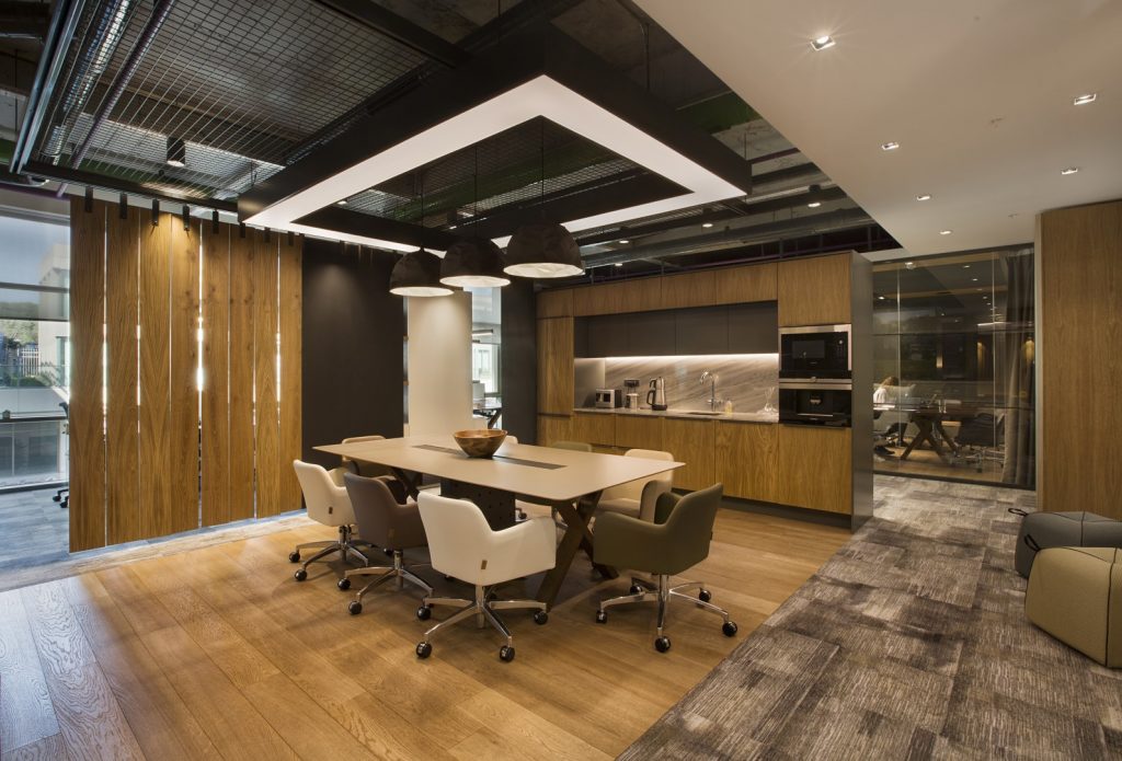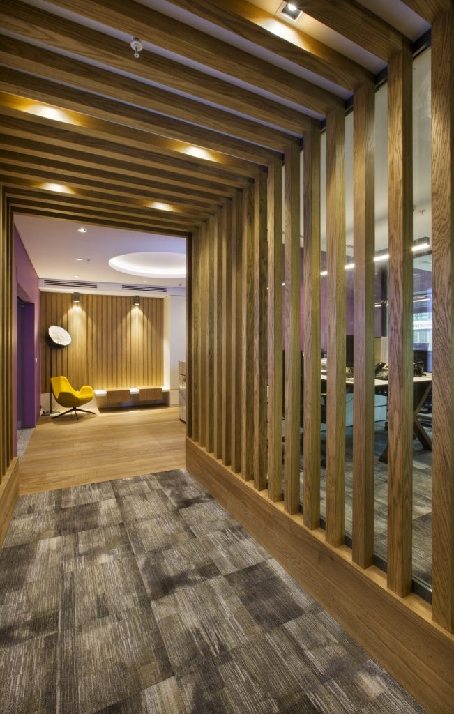 tavan sistemi uygulanmış. Elde edilmek istenilen canlı ofis mekanını desteklemek