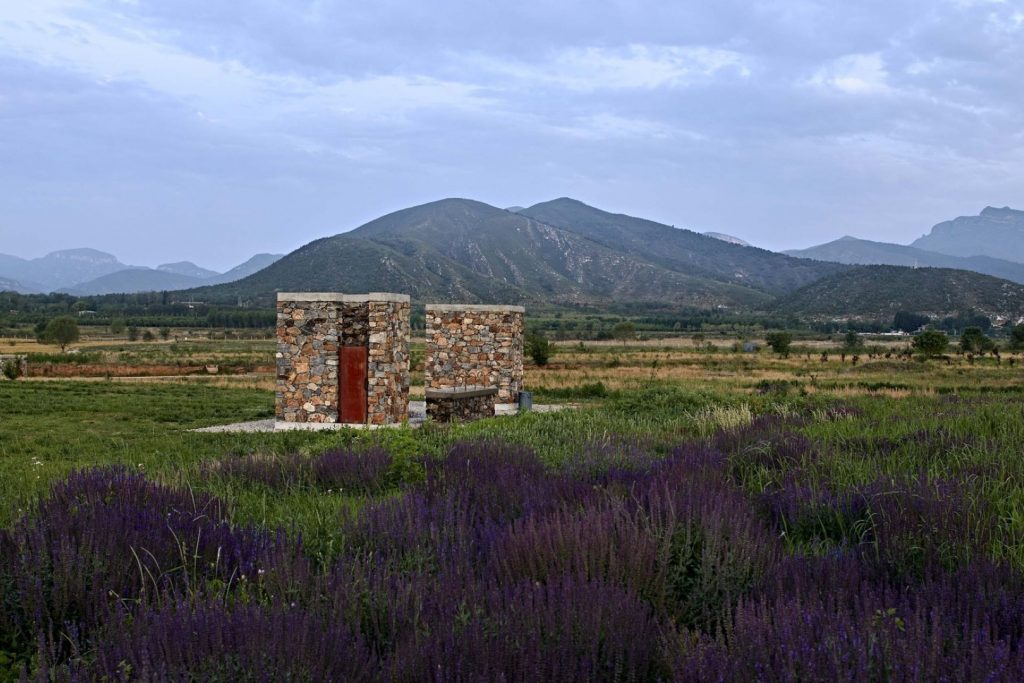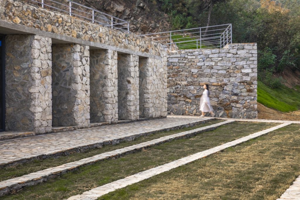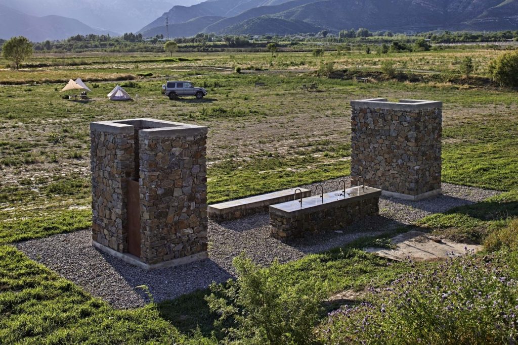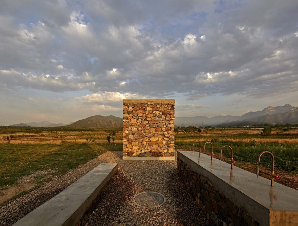 proje, basit bir dizi taş duvardan oluşturulmuş. Tuvaletler ve yıkama