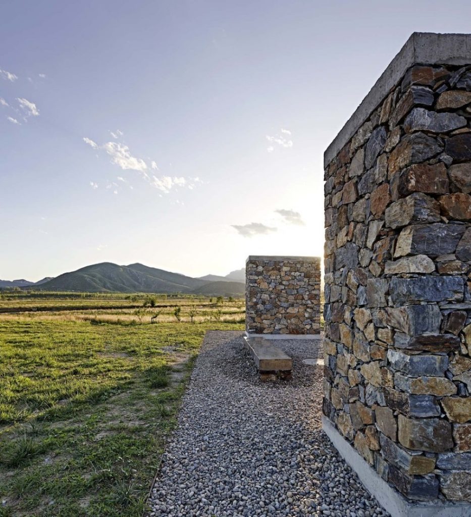 araziye yakın bir bölgeden alınmış ve taş duvarlar yerel işçiler tarafından