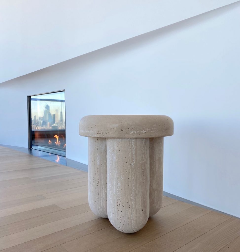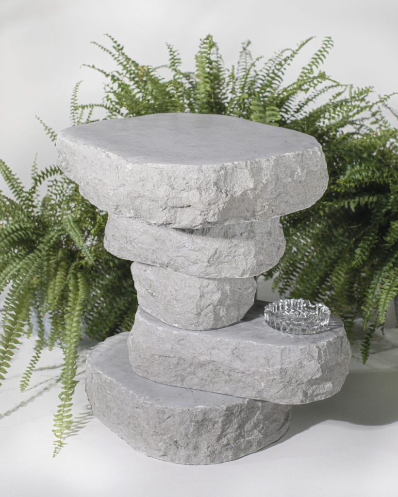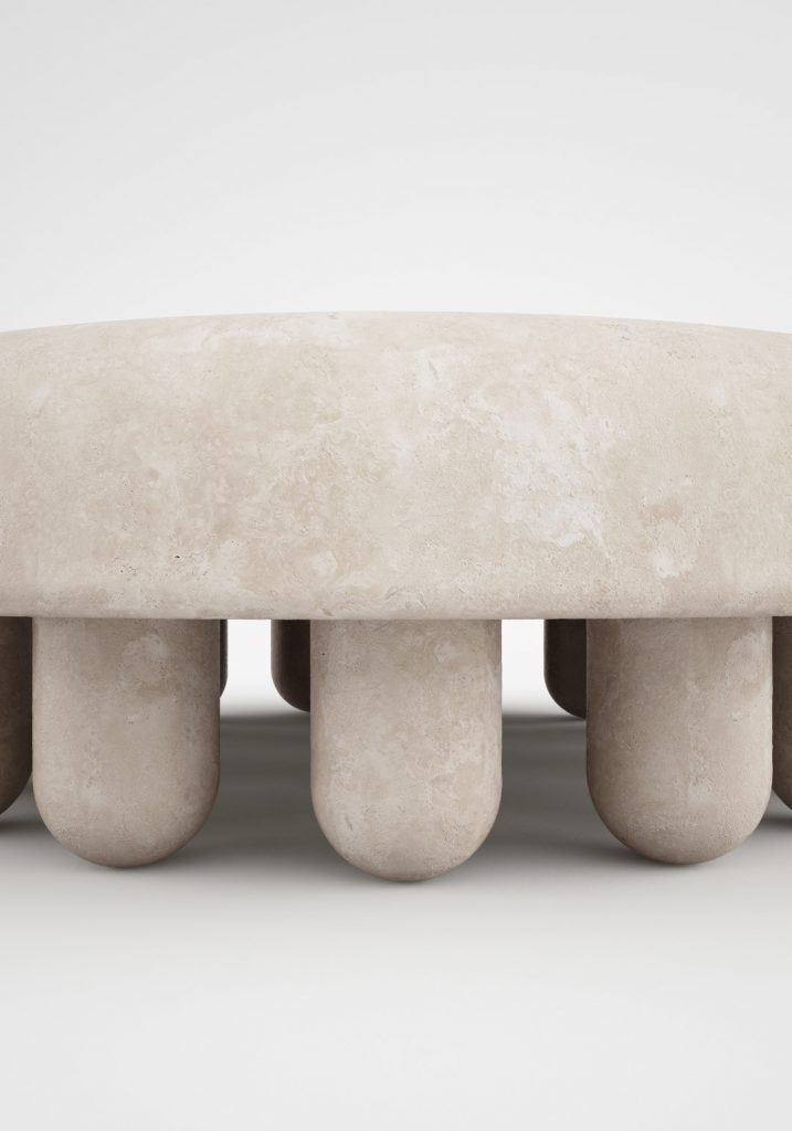 Fransız mimar ve tasarımcı Martin Massé tarafından New York’ta bulunan Studio Twenty Seven galerisi için tasarlanan doğal taş sehpalar, mantar görünümlü formlarıyla ilgi çekiyor. Orsetta isimli mobilya koleksiyonunun bir parçası olan “Orsetto 02” sehpaları kısa bir ayağın üzerinde kalın ve dairesel formda bir tabladan oluşuyor. Adını İtalyanca’da oyuncak anlamına gelen Orsetta kelimesinden alan sehpa, iri ve kalın doğal taş parçalarından yapılmış olmalarına rağmen yumuşak bir his uyandırıyor. Tasarımcı Massé, Japon animatör Hayao Miyazaki’nin çalışmalarından etkilendiğini ve bu çalışmasında Miyazaki’nin en ünlü anime karakterlerinden biri olan Totoro’ya atıfta bulunduğunu belirtiyor. Yaklaşık 35 cm yükseklikteki sehpalar kireçtaşından üretilmiş. Koleksiyondaki parçalar tek bir kişinin hareket ettiremeyeceği kadar ağır. Ağır yapısıyla tasarım ürünlerde pek fazla kullanılmayan kireçtaşı bu koleksiyona özgün bir karakter katıyor.
