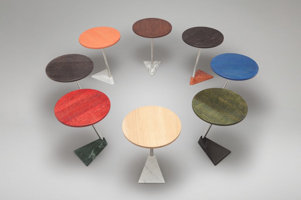 Londra merkezli tasarım firması Made in Ratio imzalı “Elements” sehpa koleksiyonu, basit bir mermer dairesel tabla, prizmatik üçgen bir taban ve ikisini bağlayan paslanmaz çelik bir gövdeden oluşuyor. Taban için gerekli ağırlığı sağlaması düşünülerek seçilen mermer malzeme, sehpalar için en dayanıklı ve en uzun ömürlü seçenek olarak tercih edilmiş. Koleksiyon, doğal malzemenin dokunma duyusuna hitap eden zenginliğinin yanında geniş renk paletiyle de dikkat çekiyor. Toplamda 8 farklı renkten oluşan sehpalar ilk olarak Belçika İç Mimarlık Bienali’nde sunulmuş. Made in Ratio Kreatif Direktörü Brodie Neill’in geliştirdiği koleksiyon, çağdaşlıkla teknolojiyi birleştiren bir anlayışla zamana karşı duran, yenilikçi ve estetik bir kimliği yansıtıyor.