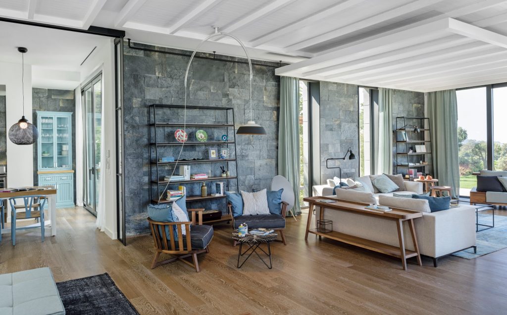 Y Evi Bodrum Cennet Koyu’nda, Mandarin Oriental sitesi içinde yer almakta. Projemizde Bodrum’un yerel malzemesi olduğu için kayrak taşı kullanmayı tercih ettik. Hem antre, merdiven holü, mutfak ve salon gibi daha genel mekanlarda, hem de yatak odaları gibi daha özel alanlarda, duvarlarda kullandık. Projelerimizde yerel malzemelerin kullanımına ekoloji için gerekli olduğunu düşündüğümüz için mümkün olduğunca yer ve öncelik vermeye çalışıyoruz. Ofist olarak genel yaklaşımımız her projeyi kendi özelinde ele almak, her türlü ihtiyacı ve veriyi iyi analiz etmek ve doğru tasarlamak. Bu doğrultuda, özellikle Bodrum gibi tutunacak bir çok dalı olan bir lokasyonda, Akdeniz’in kendine has coğrafyasına, bitki örtüsüne, iklimine, yerel yapı tarzları ve malzemelerle müthiş bir zenginliğe sahip bu bölgenin imkanlarından ve bu zenginliklerinden faydalanmamak çok yazık olurdu. Özellikle konut projeleri çok duygusal projeler. İşveren ve tasarımcı arasındaki iletişim, güven, yakınlık, diğer projelere oranla çok daha önem teşkil edip, süreç içerisinde de etkisini gösteriyor. Doğru tasarımcı/işveren birlikteliklerinde bu tarz ikna süreçlerine açıkçası çok da gerek olmuyor. Biz genel olarak projelerimizde “-mış” gibi malzemeler kullanmamaya çalışıyoruz. Ahşapmış gibi görünen laminat, mermer gibi görünen seramik… Doğal malzemeleri bildik, sıcak, samimi, güzel eskiyecek, gerçek malzemeler oldukları için tercih ediyoruz.