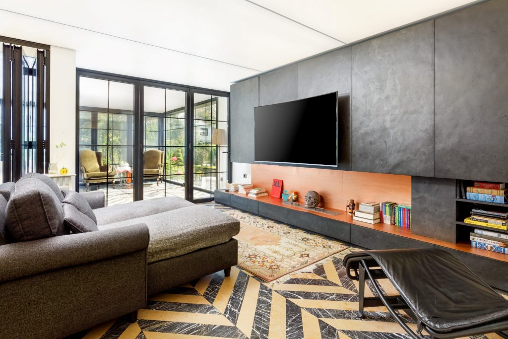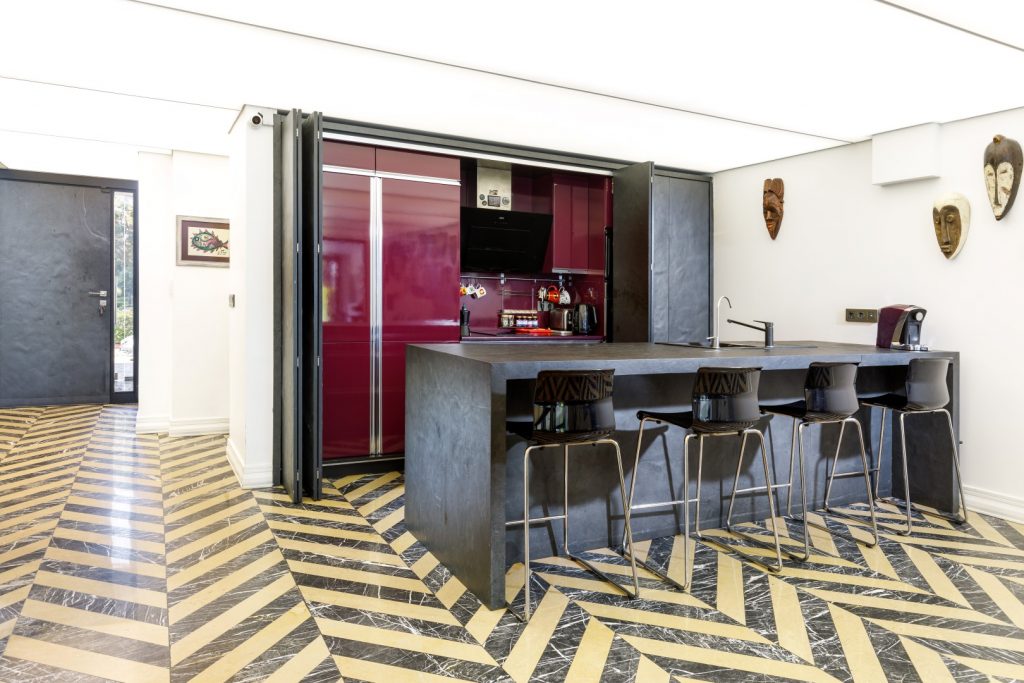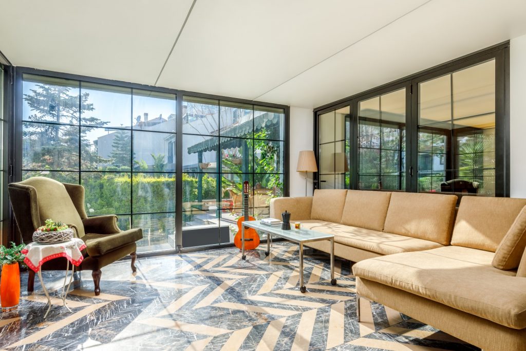 Projemiz müstakil bir sıra evin iç mimari çözümüydü. Sıra ev yapısı gereği sadece ön ve arka cephesinde açıklıkları bulunan, bugünkü standartlardan daha düşük iç yüksekliğe sahip ve bölünmüş bir zemin kata sahipken, tüm katı açık plana uygun, tavanı doğal ışık rengine yakın diffuz ışık veren ve zemini de ön bahçeden arka bahçeye kadar aynı örgüye sahip bir tektonik olarak önerdik. Evin bulunduğu alanın su baskınlarından etkilenmesi ve evdekilerin zemin kat kullanımlarının aşınmaya dirençli bir malzeme gerektirmesinin yanında ev sahibinin mermer ürünler hakkındaki olumlu düşüncesi ve evdeki mobilya ve diğer aksesuarların rengiyle uyumu sebebiyle zemin tektoniğinde olan Karacabey Siyahı ve Moca Beji mermerlerini “chevron” örgüsüne uygun ebatlandırarak kullandık. Evin girişindeki sütünlarda, eşik ve merdivende sadece Karacabey Siyahı mermerini kullandık. İşverenimizin projenin etüd safhasında mermer kullanımı konusunda olumlu bir düşüncesi vardı. Diğer taraftan bakımıyla ilgili bazı endişeleri de vardı. Zeminde chevron örgüsünde ebatlandırılarak kullanıldığı için bakım konusundaki hassasiyetin düşük bir seviyede olacağını-bozulmalar olsa da bunun kolay fark edilemeyeceğini düşünerek önerimizi hemen kabul etti. Doğal taş, doğanın eşi olmayan bir oluşumu olduğu üzere, yapılarda kullanıldığı yüzey ya da hacimlere biriciklik katan bir malzemedir. Yüzey formundaki farklı dokular ile zamansal bir algı yarattıkları gibi taşsal ifade ile bütün halinde bir süregelirlik algısı oluştururlar. Bu algıyı oluşturmayı kurguladığımız projelerimizde uygun teknik özellikler gösteren doğal taşları kullanmanın tasarımlarımıza ruh katan bir unsur olduğuna inanıyoruz.