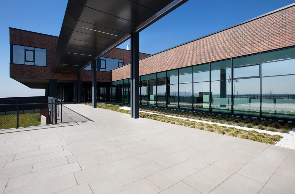Kazan, Ankara’daki Arden Medikal Fabrika projemizde binayı yol ile bağlayan geniş çelik köprünün zemin kaplamasında ve buna bağlı giriş yollarında, yerli ve yapının bulunduğu bölgede çıkarılan “Kazan Beji”nin honlu uygulamasını kullandık. Taşın diğer bir adı da “Ankara Açık Bej” olarak geçmekte. Homojen, desensiz bej rengi ile sade görünümlü bu taş genellikle dış alanlarda zemin kaplamasında ve mekanik cephe giydirmelerinde kullanılıyor. Fabrika binası da Ankara Kazan Organize Sanayi Bölgesi’nde yer alıyor, dolayısıyla ocak ve inşaat alanı birbirine oldukça yakın. Kısa mesafeden malzeme temini sürdürülebilirliğe olumlu katkı veriyor. Malzemenin teknik değerlerinin bulunduğu bölgenin dış iklim koşullarına uyumlu olması, kullanımda istenen kaymaz yüzeyi sağlaması, hedeflenen mimari konsept içinde uygun çözümü vermesi sebepleri ile tercih ettik diyebiliriz. Tasarım kararlarında işveren mimari grubun liderliğinde hareket etmek yönünde tavrını belirledi. Aynı zamanda bütçesel değerlendirmede seçilen taş, belirlenen fiyat aralığı içinde kaldı. Doğal taş, uzun ömürlü, doğa ile uyumlu ve çevre dostu bir yapı malzemesi; özellikle peyzaj projelerinde tasarımın vazgeçilmez bir öğesi oluyor.