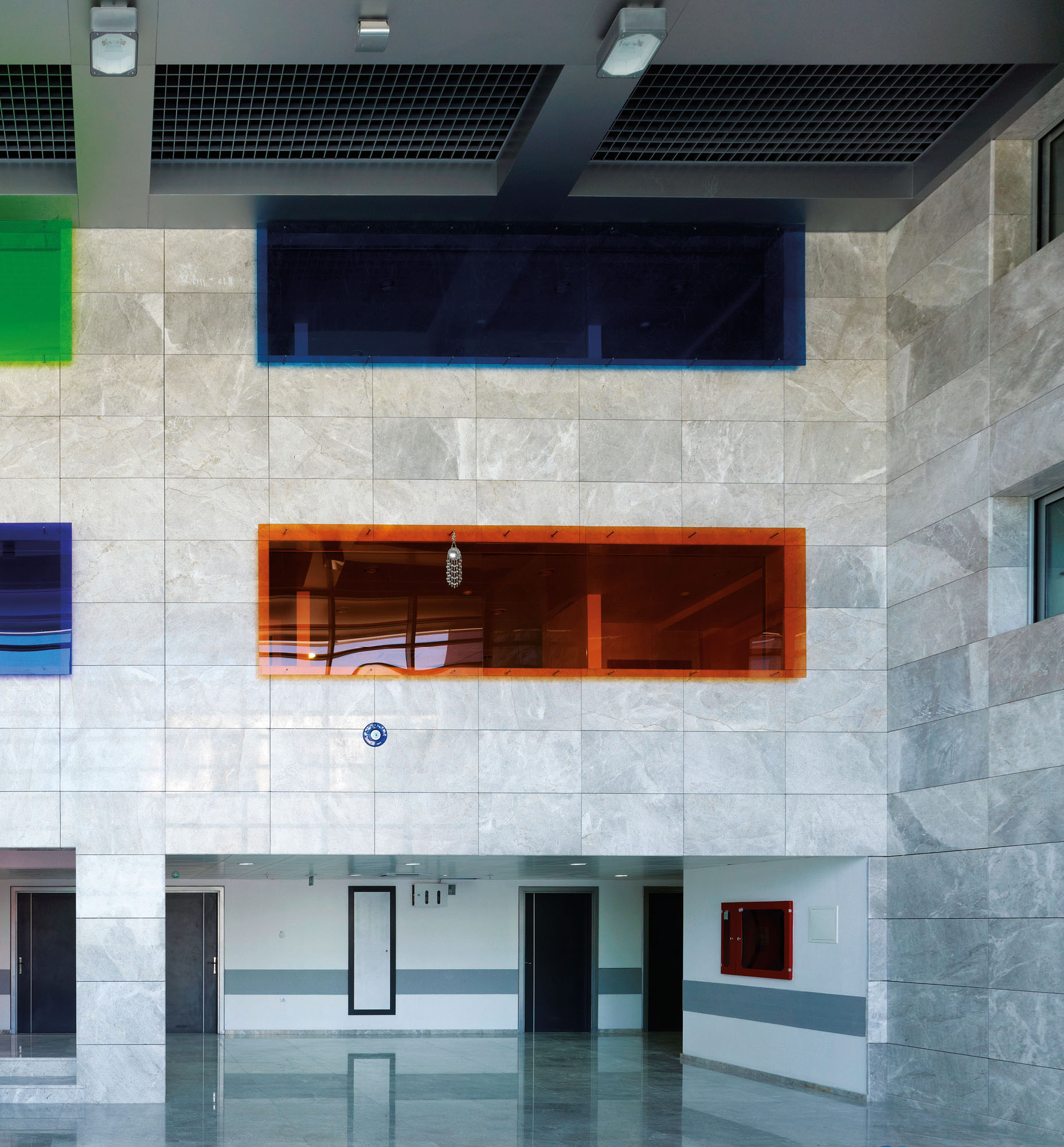 farklı renklerde şeffaf panolar takılarak gün ışığının farklı yansımaları